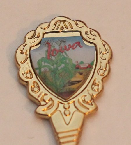 Iowa State Souvenir Gold Plated Collectible Twist Spoon 5" lpco