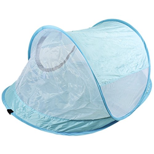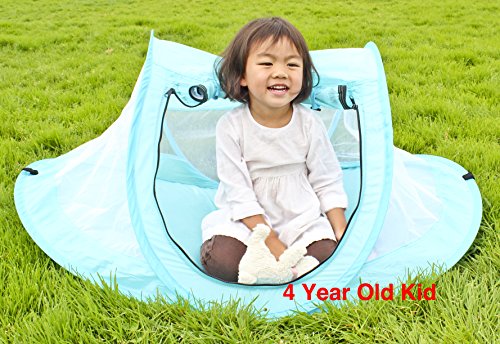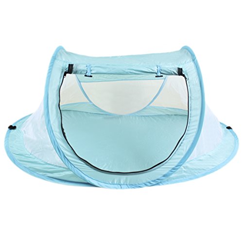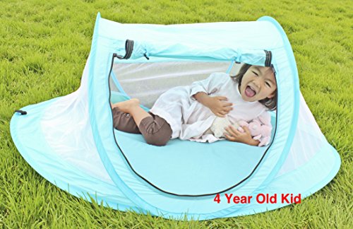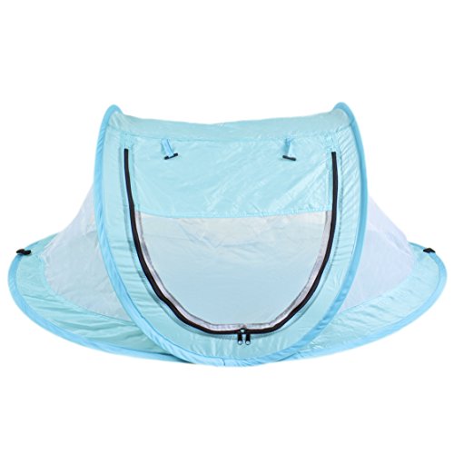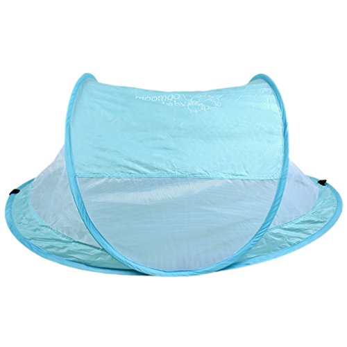 -. Binding : Baby Product -. Brand : MoomooBaby -. Feature : Zero Assembly. Zero Hassle - Self-expanding screen tent pops open and folds back down in seconds. Carry pouch included for easy storage. / Ultra-light and super-portable - weighs less than 0.7 pound (300g). Breathable clear-view mesh allows for full airflow and unobstructed view of your baby. / Ideal portable shelter both indoor and outdoor - Protect your baby from sun, wind and biting bugs. Size fits standard American crib. Tent poles included. / UV Protection SPF 30+. Flame retardant material. Non-toxic and lead-free. / Fits 6-month to 4 years old. -. Label : MoomooBaby -. Manufacturer : MoomooBaby -. ProductGroup : Baby Product -. ProductTypeName : BABY_PRODUCT -. Publisher : MoomooBaby -. Studio : MoomooBaby -. Title : MooMooBaby Pop-Up Baby Beach Crib Tent