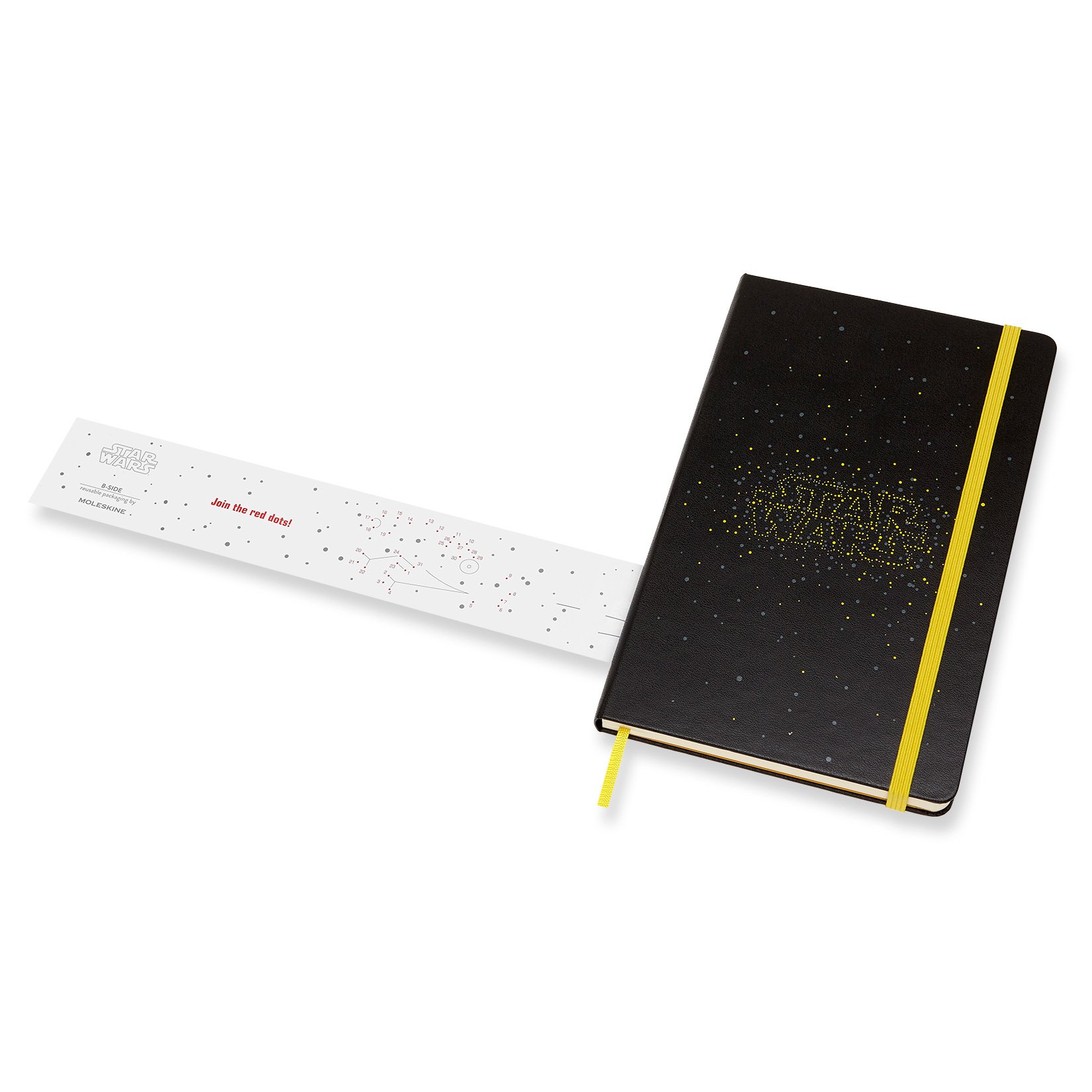 The logo of 'STAR WARS' expressed in scattered yellow and gray dots is treated, and the black hard cover looks just like outer space.