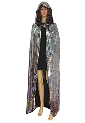 -. Feature : Material: polyester and paillette / Size: L: 150cm/59in(Bottom to shoulder); hat: 45cm/17.71in; M: 130cm/51.18in(Bottom to shoulder); hat: 45cm/17.71in / Dazzling paillette decoration / Fits for Christmas Theater and other party / Package: 1 X Cloak