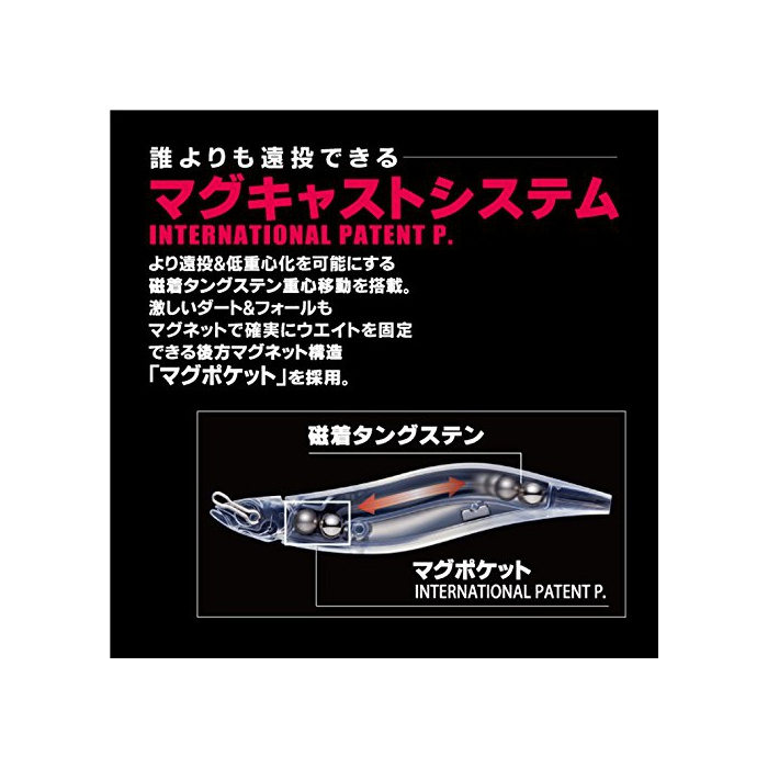 【머그 캐스트 시스템 International Patent P.】:보다 원투&저 중심화를 가능하게 하는 자착텅스텐 중심 이동을 탑재.거센(심한) 더트&폴도 마그넷에 확실히 웨이트를 고정 할 수 있는 후방 마그넷 구조「머그 포켓」를 채용.