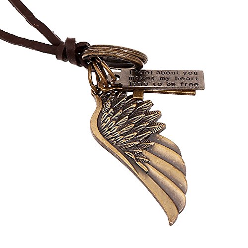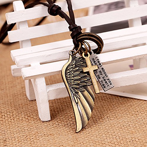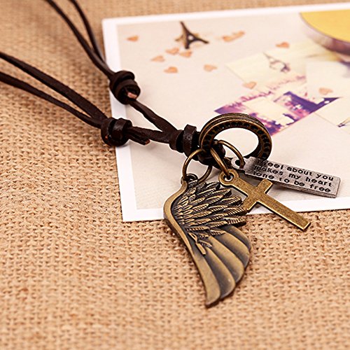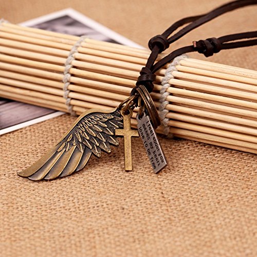 INEBIZ Angel Wings Retro Woven Cowhide Car Charm Interior Rearview Mirror Decoration Hanging Pendant Fashion Necklace