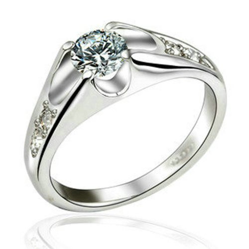 - Feature : High quality round Cubic Zirconia sparkles with grace and beauty. The diameter of the stone is 0.2''. / 18K gold plated, nickel free and tarnish free, silver color and comfort fit. / Occasion: Birthday party cocktail wedding engagement ect / Shipped out in an exquisite jewelry gift box. If not fulfilled by Amazon, delivery time 7-15 days. / One year warranty to ensure you a perfect shopping experience.