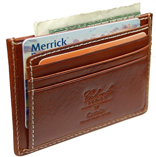 -. Binding : Apparel -. Brand : Castello -. Department : mens -. Feature : *Top Grain Italian Leather / *6 credit card slots,*2 flaps slots for cash or credit cards for easy access / *Top slot for cash or more cards,*This Castello wallet has an advanced material, which blocks RFID signals and secures valuable P.R.Ivate information stored on your RFID chipped credit card from unauthorized scans. / *Slim wallet is discreet and can fit comfortably in your front pocket / * Gift box included, *Size: 4 inches wide x 2.75 inches long -. ProductGroup : Apparel -. ProductTypeName : ACCESSORY -. Size : One Size -. Title : Castello Italian RFID Slim Card Leather Wallet