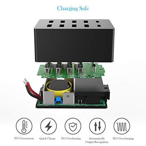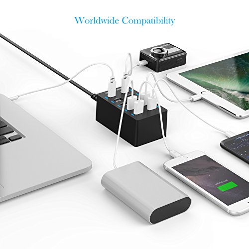 MULTI-PORT CHARGING: Es kann bis zu 10 Gerate gleichzeitig, kompatibel mit iPhone, iPad, iPod, Samsung, Tablets, Smartphones und alle anderen digitalen Gerate, die Aufladung durch einen DC 5V 0.1A-2.4A USB-Port (mit Smart IC Funktion).