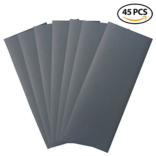 - SILICON CARBIDE ABRASIVES: Sandpaper sheet is made of silicon carbide, mounted on flexible and waterproof paper, for good sanding effect and long service life, 400 Grit, 45PCS