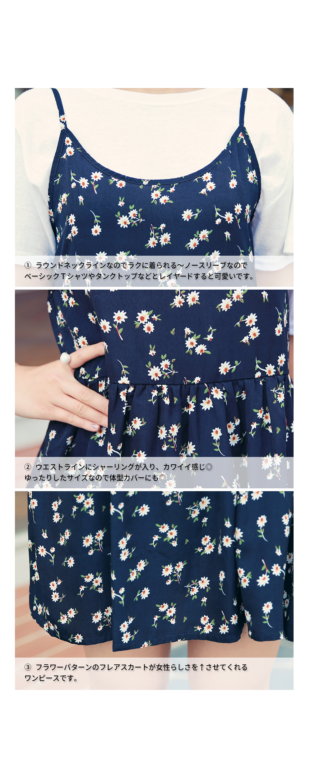 可愛らしくて、女性らしいフラワービスチェワンピースをご紹介いたします。 全体的に入ったラブリーなフラワーパターンで華やかで若々しく見せてくれながらスリーブレススタイルでレイヤードした着やすい実用満点のアイテムです。腰ラインを全体的に細く見せながらスカートラインで体型カバーも助けてくれる魅力満点のワンピース!!スカートラインには裏地がついており透け感が全く無くラクに着ることができます。このワンピース一つでポイントになり、ベーシックなアイテムと一緒に合わせても可愛く着れるデイリーアイテムです。 *ご購入前に、詳細写真とサイズを必ずご確認ください。