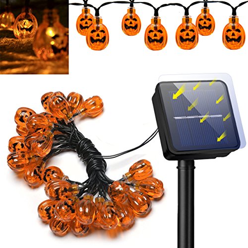 -. Feature : ★Halloween is approaching, this is one of the seasonal string lights you must have. Perfect to put inside ob beside your jack-o-lantern. String lights of 20 pumpkins on a well made cord. It has 2 different modes, Flashing and steady. / ★ENERGY SAVING: Powered by solar energy, the solar string lights can light up to 8 hours after fully charged. Don't require additional cost to decorate your garden, fence, path, patio, lawn, porch, gate, yard, etc. / ★IP64 WATERPROOF: IP64 waiterproof The solar string lights are tough and durable, suitable for indoor or outdoor decorates. It can withstand any kinds of weather. No need to worry about rainy days or any bad weather. / ★SPECIFICATION: Line length: 188.9 in, Length between 2 bulbs: 6.5 in. 20 LED lights with 2 working modes. This is definitely a cute addition to your halloween decor. It's very light so its easy to hang up. / ★Cinidy Waterproof Solar String Lights Create Warm, Joyful and Festive Ambience to Light up You Home, Garden, Patio, Lawn, Party and Holiday. The product includes a 45 days money back & 18-month warranty. Any questions, please feel free to contact us.