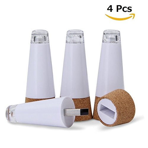 Pack of 4 USB Rechargeable Cork Bottle Lights, Sremy 12 Lumens LED Wine Cork Light Lamp for Christmas Party Wedding Bar Home Decoration (White)