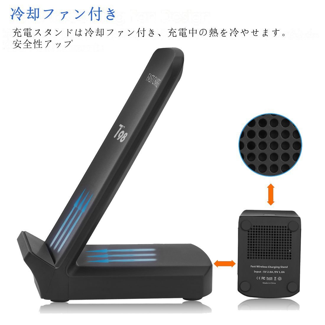 Charging stand with cooling fan, cooling the heat during charging.