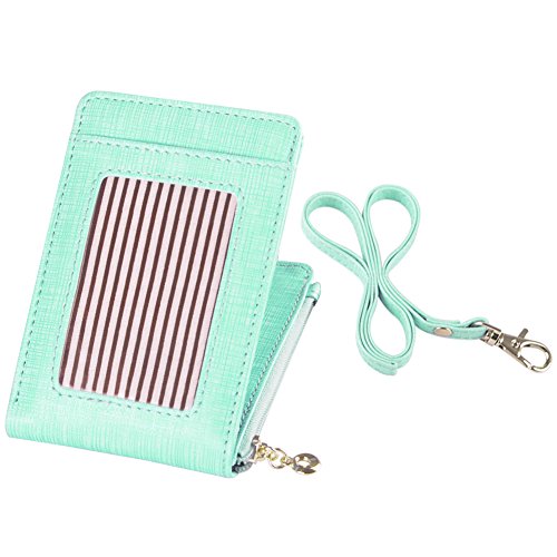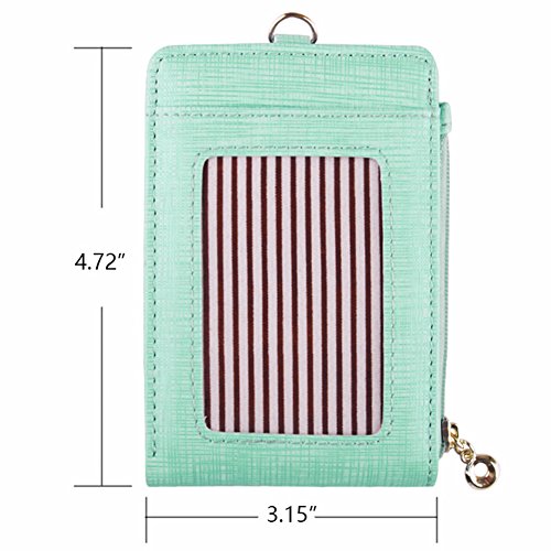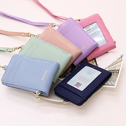 -. Feature : Holder Size:4.72"L x 3.15"W; 35.4"full round length / 1 ID window,2 card slots / ID Window with Clear Cover features visibility and protection / Bifold design great for attaching ID badges for students,office worker,OL etc / 6 Candy colors: Pink,Green,Purple,Royal Blue,Rose,Blue