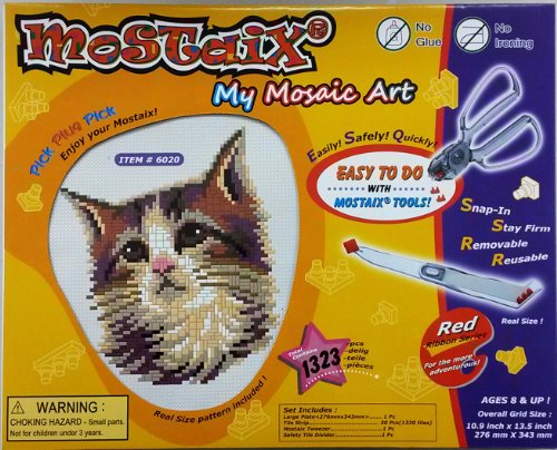 -. Binding : Toy -. EAN : 4895078360202 -. Feature : Make a picture of this cute Kitten using the small coloured plastic tiles of different shapes / The snap-in tiles easily stay in place on the grid with no need for glue or ironing / Includes 1332 coloured plastic tiles and 266mm x 333mm grid / The tiles can be removed and used again and again to create different pictures from your imagination / Also includes plastic hanger for display, placement and removal tool plus safety tile divider -. Label : Kidicraft -. Manufacturer : Kidicraft -. Model : M6020 -. MPN : M6020 -. NumberOfItems : 1 -. PackageQuantity : 1 -. PartNumber : M6020 -. ProductGroup : Toy -. ProductTypeName : TOYS_AND_GAMES -. Publisher : Kidicraft -. Studio : Kidicraft -. Title : Mostaix Red Ribbon Series Kitten Mosaic Art Set