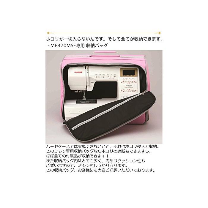 【MP470MSE한정】기다려 바늘이 미싱 본체에 찌를 수 있는 오리지날 핑크《숀》와 먼지의 침입을 막는 세련된 미싱 수납 가방 부착