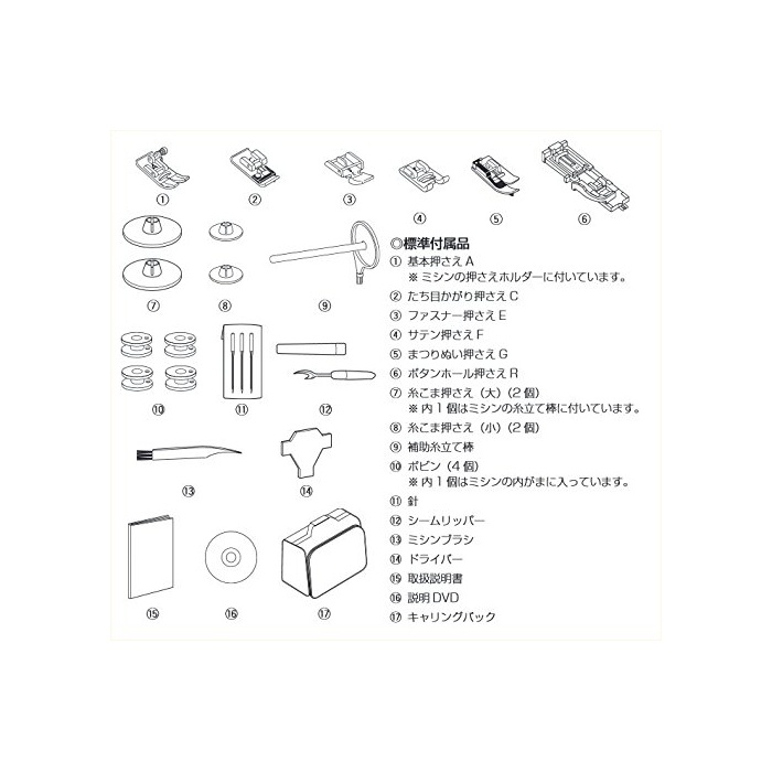 【사이즈】높이302mm×폭406mm×(길이)깊이177mm【무게】6.3kg【부속품】압네(기본 억제하고, 들 눈(째)인지(든가) 꾸중 억제해 패스너 억제해 새틴 파악(압류)해 마츠리 박음질 억제해 버튼 홀 압네)사팽이 압네(대2개,소2개)보조사 입봉bobbin4 개침세트 seam re《파미신부라시도라이바》취급 설명서 취급 설명DVDcarrying 백