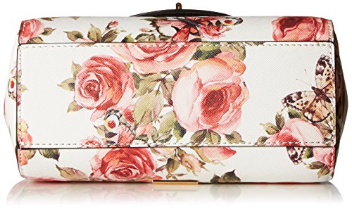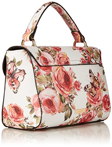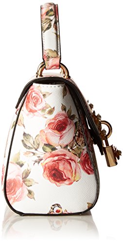 Small top handle with hardware flower detail on the flap and custom pad lock