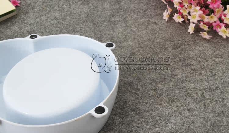 Reference dimension about: peripheral 16CM*5CM, bowl diameter of about 14CM*12CM, deep 4CM, suitable for small dogs and cats