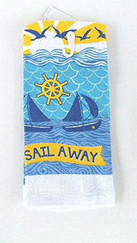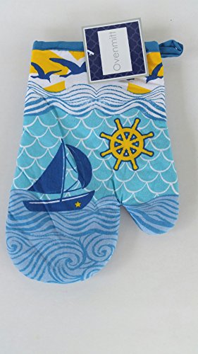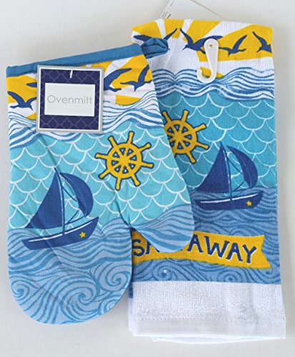 Nautica Sail Away Heat Resistant Oven Mitt (7 in. x 10 in.) and Kitchen Towel (15 in x 25 in) For Cooking, Baking, Grilling, Kitchen Bundle Both 100% Cotton Blue Yellow & White