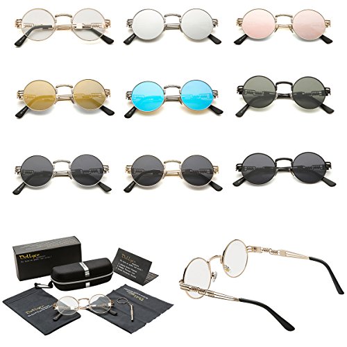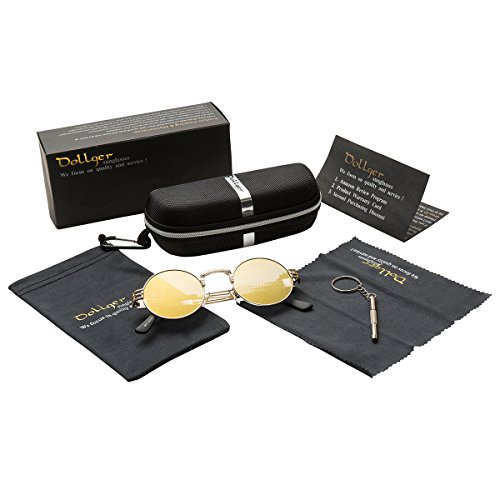 Product Description DOLLGER SUNGLASSES, FOCUS ON QUALITY AND SERVICE Provide The Best Quality Sunglasses and Customer Service on Amazon! ?The super light full metal frame: You can hardly feel them on your face, yet they are unbreakable ?The flash miror lenses for the most comfortable fit available today in addition to unparalleled durability ?Super cute frame design for golf, cycling, running, fishing and all active outdoor lifestyles ?100% UV protection lens FEATURES BENEFITS ★Retro and stylish design, full of the rhythmic energy of the rock music ★Steampunk style look vibrant, sharp and true ★John Lennon style lens help eliminate reflected and scattered glares ★Polycarbonate lens help eliminate reflected and scattered glares ★Works good in wind and rain ★Suitable for sports or other outer door activities WARRANTRY GUARANTEE ※Every pair of sunglasses is tested by professional workers ※Comply with US U.S. Standard ANSI Z80.3-2001 | CE Certified ※Lifetime Breakage Warranty on Frame Lens ※30 Day Money Back Guarantee PACKAGE GIFTS - 1*Sunglasses - 1*Hard Protection Box - 1*Glasses Pouch - 1*Metal Screwdriver - 1*Cleaning soft fabric pouch CARE MAINTENANCE To avoid damage, never clean your sunglasses with paper towels or clothing, and also avoid using household detergents or soaps. While a few mild soaps don't harm lenses, today's extra strength soaps are powerful enough to slowly disintegrate lens coatings. [TIP!] Great gift idea for your family,friends and lovers,etc 100% Satisfaction Guarantee. Try risk free. ADD TO CART RIGHT NOW! 0