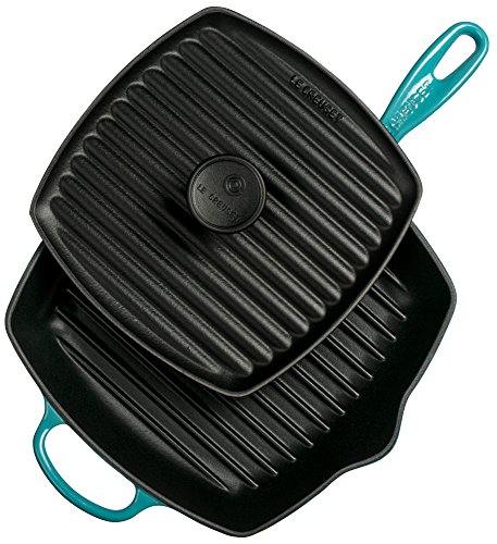 르쿠르제 Le Creuset Cast Iron Panini Press and서명 스퀘어 스키렛트(후라이팬요리) 그릴 세트,101/ 4인치,Caribbean
