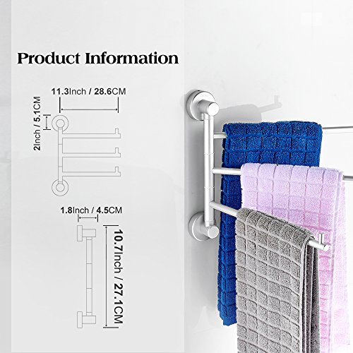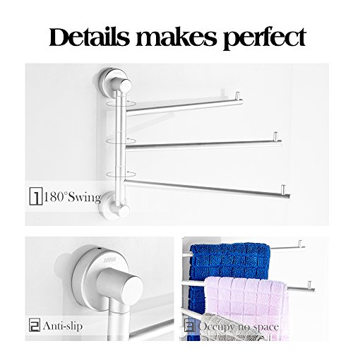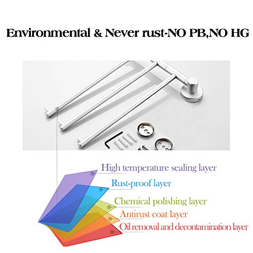 Bathroom Swing Towel Bars 3-Arm Swivel Towel Shelf Wall Mount, Aluminium Oxide Environmental Friendly, Light Grey