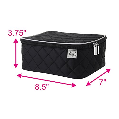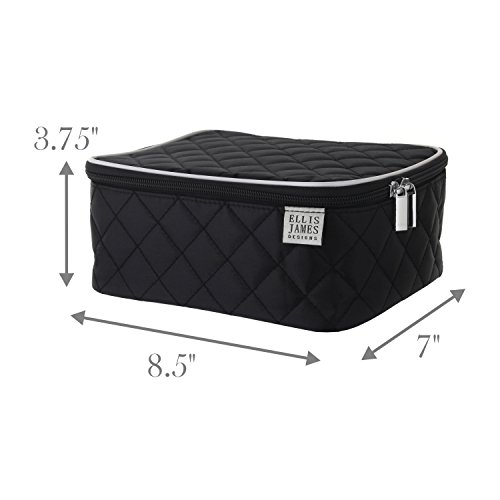 The Beautiful Ellis James Designs Travel Makeup Train Case Organizer Bag Gives You Just The Right Amount Of Space, With a Size Inspired By Our Customer Requests! With Elegantly Designed Makeup Brush Tool Holders, a Large Zipped Pocket, Adjustable Dividers, AND a Bonus Nailpolish Lipstick Divider - You Can Use Your Bag However YOU Want. Whether a Gift For Yourself Or Someone Else, You'll Enjoy Opening Your Ellis James Designs Gift Box To Find The Latest Addition To Your Collection, It's The Perfect Way To Say Thank You, I Love You, Or I'm Thinking About You To Your Niece, Daughter, Wife, Mother, Sister, Bridesmaid, Bride or Student We've Designed This Bag With YOU In Mind. You Have a Busy Day To Day Routine And You Need a Bag That's Going To Support All Of Your Daily Activities. That's Why We've Designed a Bag That Is Multi-Functional, With a Classic Timeless Design. Your Bag, Your Way Whether Used As a Cosmetic Make up Bag, Wash Bag, Travel Toiletry Bag - You Can Truly Make Your Bag Yours. Use It Your Way! Store Your Makeup, Cosmetics, Toiletries Beauty Tools In This All-In-One Make-Up Bag . The sky is the limit! Want To Store Your Lipstick, Nailpolish, Moisturizer, Foundation, Compacts, Oils Lotions, Anti-aging Cream, Mascara, Eye-shadow, Eyeliner, Perfume and more? And We Haven't Even Mentioned Your Beauty Tools, Like Your Hair Brush, Eyelash Curlers, Mirror, Makeup Brushes, Nail Files and the rest! It's the essential Travel Makeup Bag Perfect For Women, Girls, Teens, Stylists, Makeup Artists Professionals. Use At Home, For Travel, On Vacations and More... Use When Traveling, Day To Day, For Business Trips, Holidays, Overnight Stays, Weekenders, Jumping On An Airplane Or Train, In A Hotel, At Weddings, Or Just At Home On Your Vanity! Details Size: 8.5 W x 7.0 L x 3.75 D (Inches) Color: Black Bag Supplied Empty, Contents Not Included 0 |