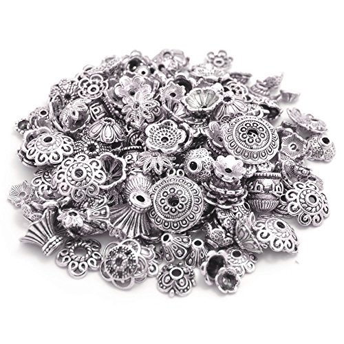 160-210pcs Bali Style Jewelry Making Metal Bead Caps Deluxe New Mix, 100 Gram,Tibetan Silver