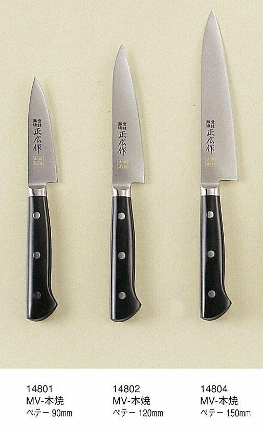 職人用庖丁に開発実績のある正広オリジナル特殊ステンレスを使用した商品。 ※サプライヤー直送品 ご注文後7~8営業日後の出荷となります【商品名】238223 正広作 MV-本焼 ペテー 150mm #14804