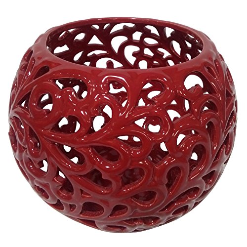 Three Hands Ceramic Bowl Pierced-Red