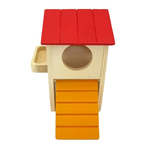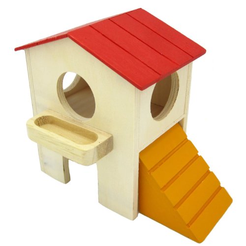 Provide a safe harbor for your small animal with lookout holes to keep an eye out. Fun nesting and resting place. Made with pet safe materials. Relieves boredom and increases activity level. Ideal for hamster, mouse and other small furry animals. This small animal hideout measures 6.5" in width, 4.5" in depth and 5.75" in height. Its entrance hole measures 2.25'' x 1.6''. There are six windows each 1.6" in diameter. Easy to clean and resistant to odors. Add a natural look to your pet's home, while giving him a fun spot to play. Made of natural wood material.Feature