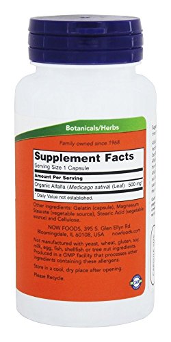 NOW Foods - Alfalfa Leaf Organic, Non-GE 500 mg. - 100 Capsules