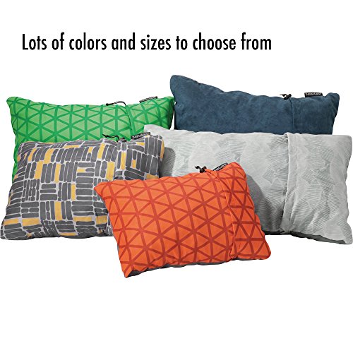 ThermaRest Compressible Pillow Enjoy some luxury on your next camping trip. The ThermaRest Compressible Pillow is extremely lightweight and packs up into a tiny stuff sack that won't take up too much room in your pack. When you open it up the pillow expands for portable comfort. With a brushed polyester cover and urethane foam filling, these pillows are outdoors friendly and amazingly comfortable. | Weight: | Dimensions: | Fill Weight: | | Small | 7 ounces/198 grams | 12 by 16 inches (WxH) | 4.5 | | Medium | 9 ounces/255 grams | 14 by 18 inches (WxH) | 7 | | Large | 12 ounces/340 grams | 16 by 23 inches (WxH) | 9.5 | 0 |