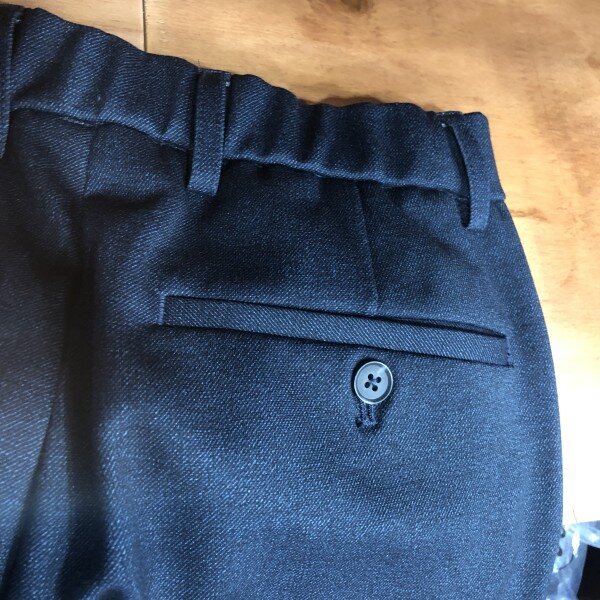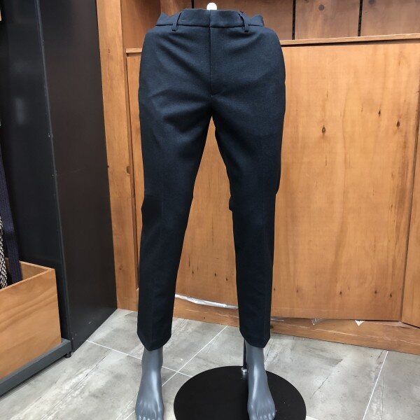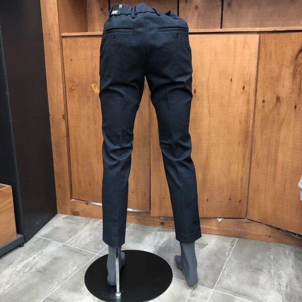 뒷부분 전체에 밴딩이 들어간 바지 이며 컬러는 네이비 컬러로 깔끔한 색상이여서 아무곳에 매칭하기 좋은 바지입니다