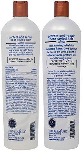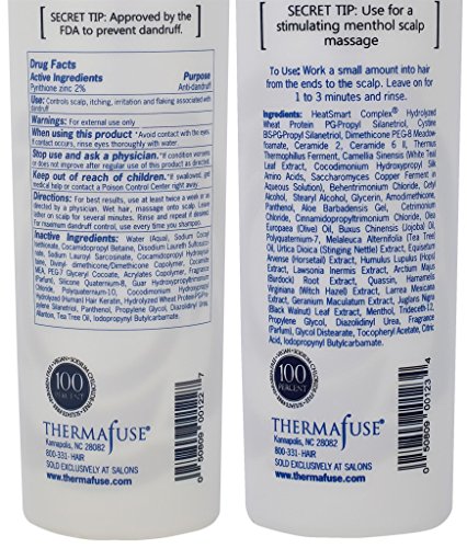 - FDA APPROVED ANTI DANDRUFF SHAMPOO AND CONDITIONER: If you suffer from dry scalp or annoying flakes take care of the issue with Thermafuse Thermadan Duo. The active ingredients are proven to stop dandruff and soothe the itch and flakes associated with dandruff, while the botanical ingredients build health and body into your hair.