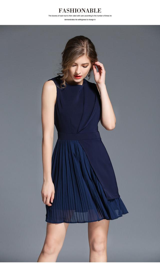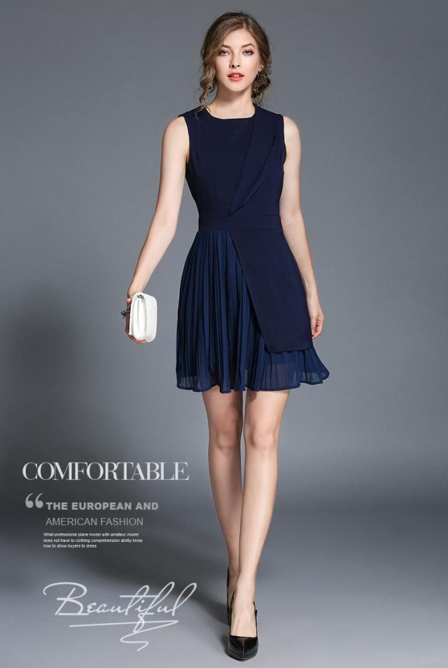 ノースリーブ シフォン プリーツ 膝上 ドレス ワンピース 結婚式 二次会 パーティー 女子会 卒業式 謝恩会 コンサート ディナー