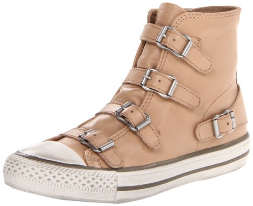 High-top sneaker featuring reinforced cap toe and five adjustable buckle straps at front and heel counter