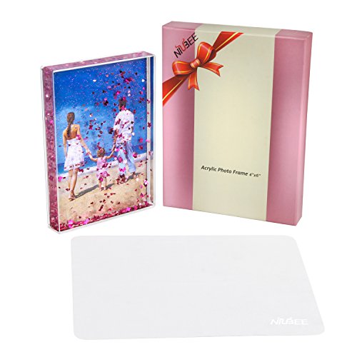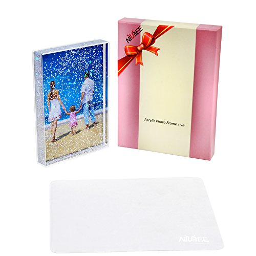 -. Feature : Safety Material - This photo frame is made of super clear acrylic and filled with non-toxic and eco-friendly liquid inside. / Sparkle and Glitter - When the frame was turned, the small floater will fall and swirl, which makes our picture looks dynamic. / Great Gift Ideal - Packed with gift box, can be used as a present for your lover, girlfriend or family members, best choice for Christmas gift. / Widely Used - Designed for valuable picture, such as postcard, Amazon P.R.Ints,currency, tickets, greeting cards, baby pictures, awards or your other wonderful memory. / 100% GUARANTEE - Niubee guarantee 30 days money back and 1 year quality warranty, get our service support for any unhappy shopping experience.