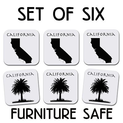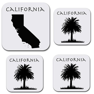 California State Map Palm Tree Absorbent Beer Coasters - Set of six (6 pcs) - Gifts Home Office - Furniture Safe - Quality Neoprene Beverage Coaster 1/4 Inch Thickness 3.5"x 3.5"