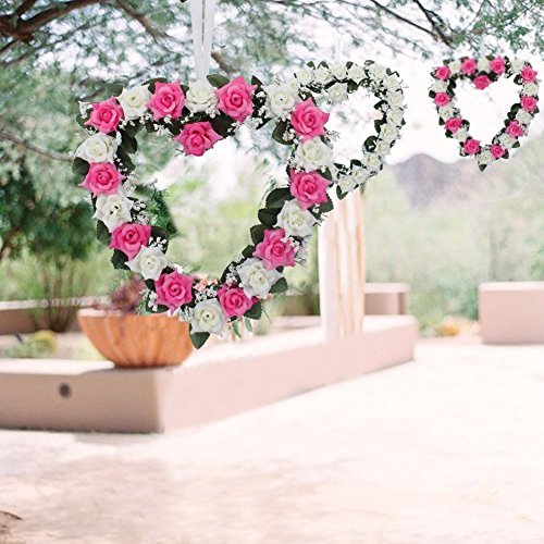 Heart Shaped Rose Wreath Hanging Wreaths Flowers Garland with Silk Ribbon for Home Door Wall Decor Wedding Car Decoration (Purple and White)