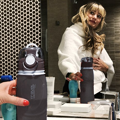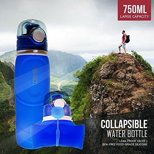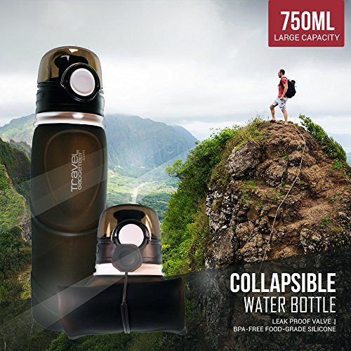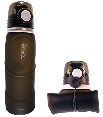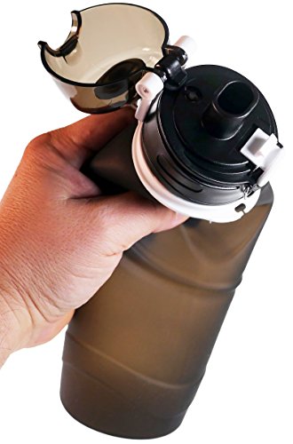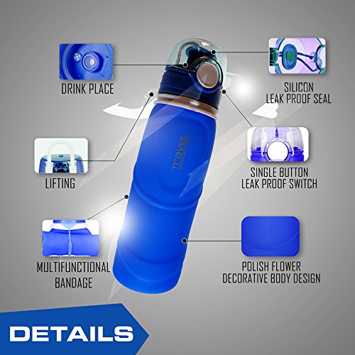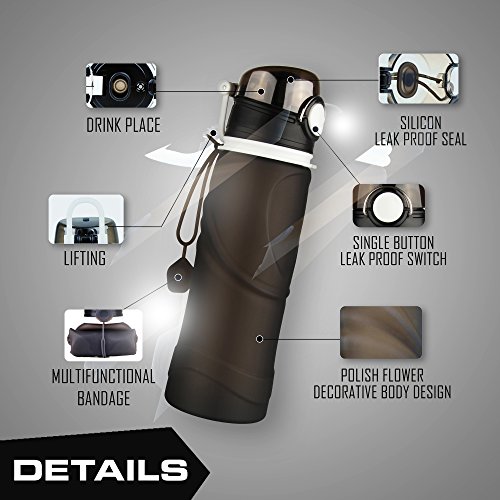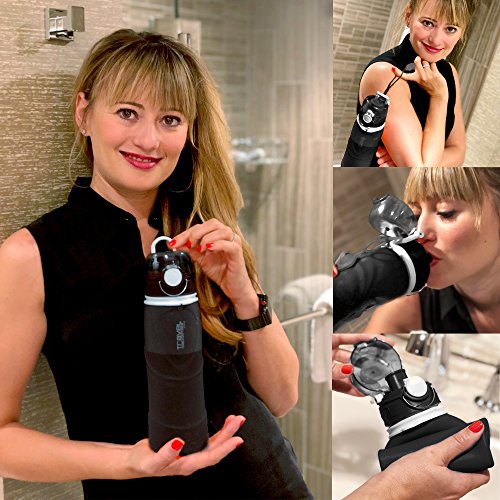 Sport Water bottle with extra-large capacity of 750ML (26 oz), while still small enough to grip in one hand. This water bottle has a newly designed spill-proof valve, only available on our pro-series bottle. Product is fully collapsible and rolls up nicely for stowaway, making it a perfect travel accessory. Can be easily cleaned and washed due to wide opening. It is even machine washable in top rack. This unique water bottle looks great, is super convenient and holds a lot of water. Additional Info: Bottle when open is 10 in highCircumference 3 in 0 |