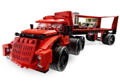 Cruncher Block tries to fix every race'|but this time, the mysterious Racer X is out to stop him! But the masked racer will have to be careful -- Cruncher's massive semi truck is packed with tricks and traps like a hidden firing missile. Includes Cruncher Block, Racer X, Cruncher's Driver and Taejo minifigures! Launch the truck's hidden missile! Flip the cab's roof open to put Cruncher's Driver at the wheel! Truck's control center has a fish tank and works of art on the walls! Semi truck measures 13" (33cm) long and 4" (10cm) high! Racer X's yellow and black racecar measures 6'½" (17cm) long. Ages 7-12. From LEGO 0
