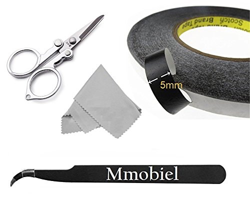 Double Sided Layer Adhesive Sticky Glue Tape Sticker 1mm Wide and 50 meter long for use in Tablets Mobile Phone Touchscreen Digitizer LCD Screen Display Glass Professional kit incl. 1 pair of Tweezers 1 Cleaning Clotch and 1 pair of Special Scissors