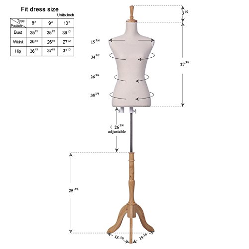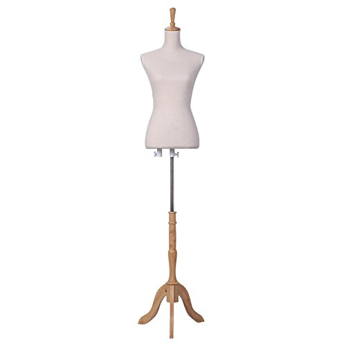 Pinnable Female Dress Form Size 6-8 Mannequin Medium Wooden Base Linen Fabric 35” 27” 35”
