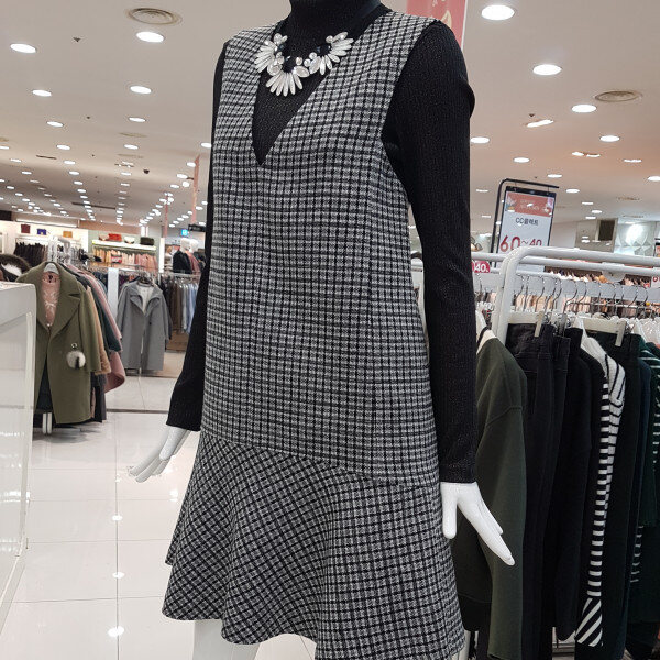 체크패턴에 세련하네용민소매스탈은 이너코디마다색다른 연출가능하시구요^^살짝퍼지는 밑단에 하체통통인 제가 ㅎ날씬해 보여 넘 좋으네용세련에 여성스런디쟌이랍니다