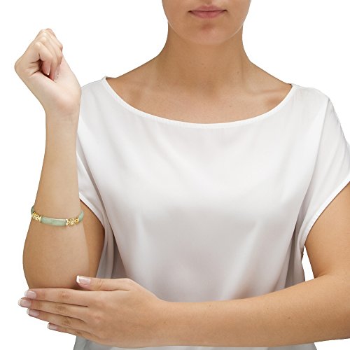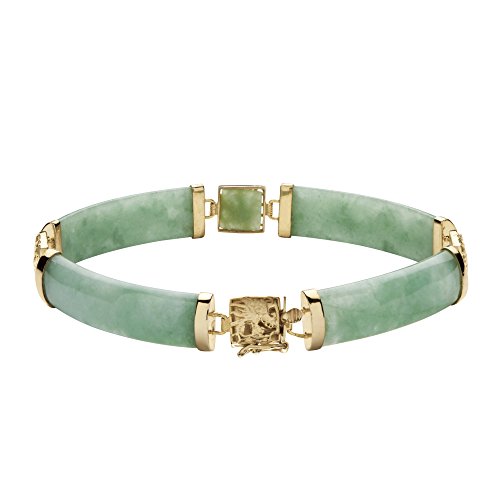 Considered a rare gift of nature, green jade is worn by women as a symbol of luck and beauty. Our jade link bracelet is interspersed with golden plaques. 7 1/4" length. Sterling silver with a golden finish. As these items are genuine jade, the actual stone colors may vary slightly. - 50818Feature