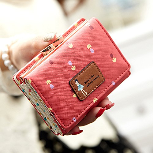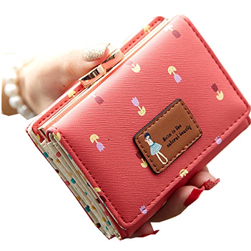 Size: 4.5*3.5*0.8 inches Excellent gift for teen girls and ladies Small chic and durable floral wallet made of good workmanship and elite PU leather. rendy Sweet style with floral designed faux leather, this coin purse is a nice gift for girls. 0