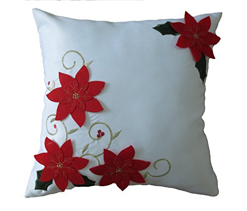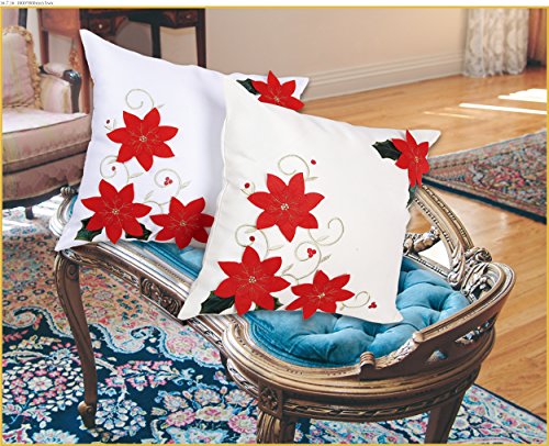 DECORATIVE STYLE - Perfect decoration for the Christmas Season. Colorful and delicate cushion cover with poinsettias and embroidered design to display for any holiday occasion or event.