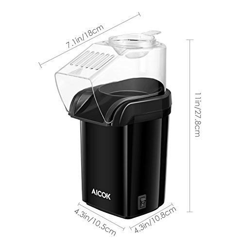 The Aicok Hot Air Popcorn Machine, faster than a microwave and the other popcorn machine. Pops less than 2 minutes. Left very few unpopped kernels, provides you a theater-style treat. Make movie night even more fun for the whole family with this popcorn popper. It is quickly and simply cleaned with a swift swipe of the interior using a paper towel or cloth. Pops with hot air, not oil for a low-fat treat, healthier, and more economical than most microwaves. It is a good gift for kids, teens and friends. Specification: - Rated Power: 1200W