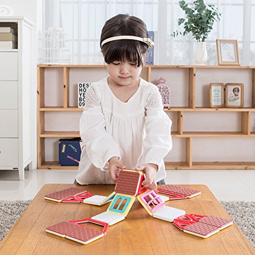 Construct buildings from 2D to 3D with Magformers Build up 50Pc Set. Use Magformers pull-up building technique to create Cabins, Towers and Apartments. Clip in balconies, windows and bricks and create your own stories. Follow along with the idea sheet to reassemble your Magformers into 6 different buildings. All Magformers are compatible and the possibilities are endless.Feature