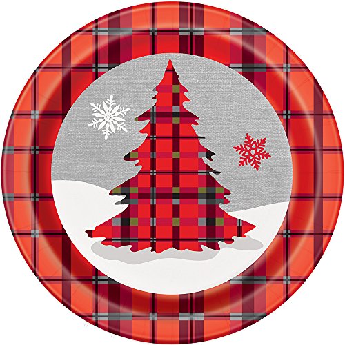 Rustic Plaid Christmas Paper Party Plates, 8ct