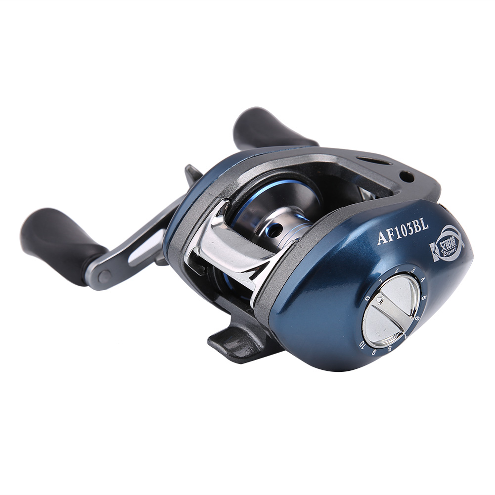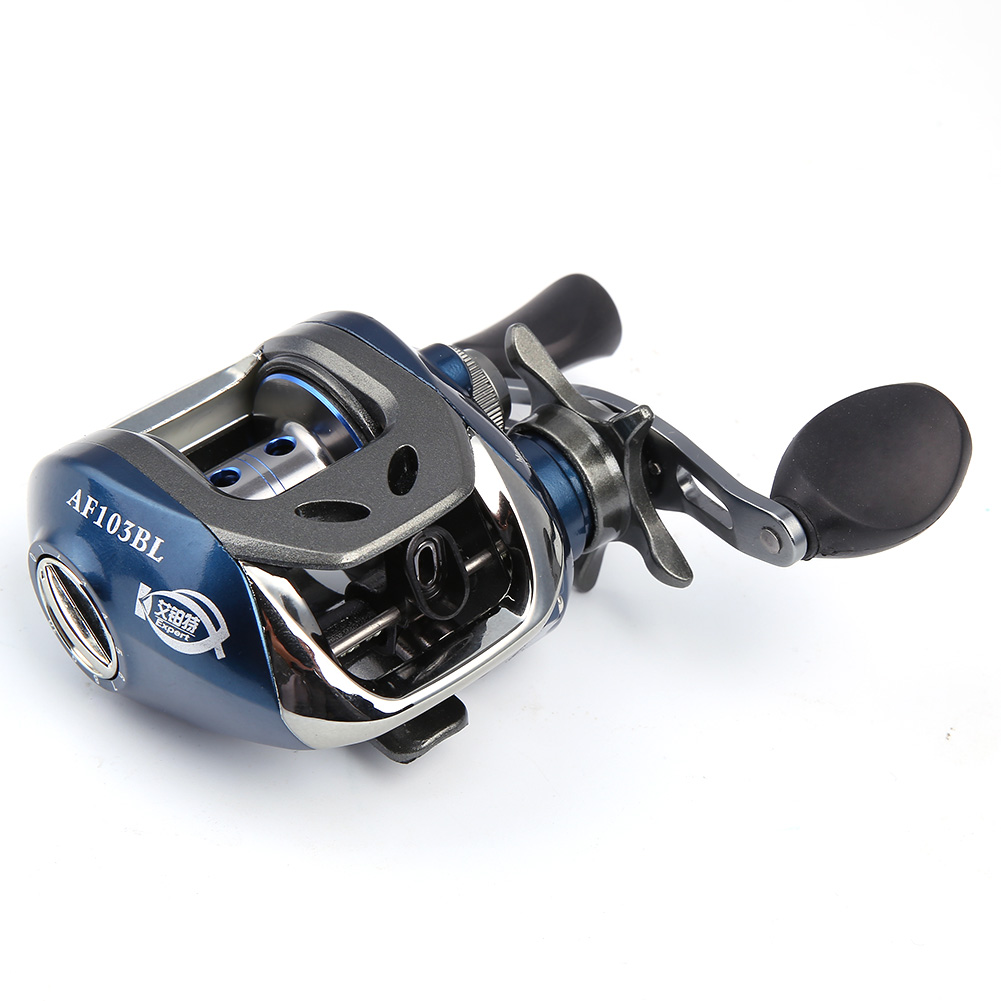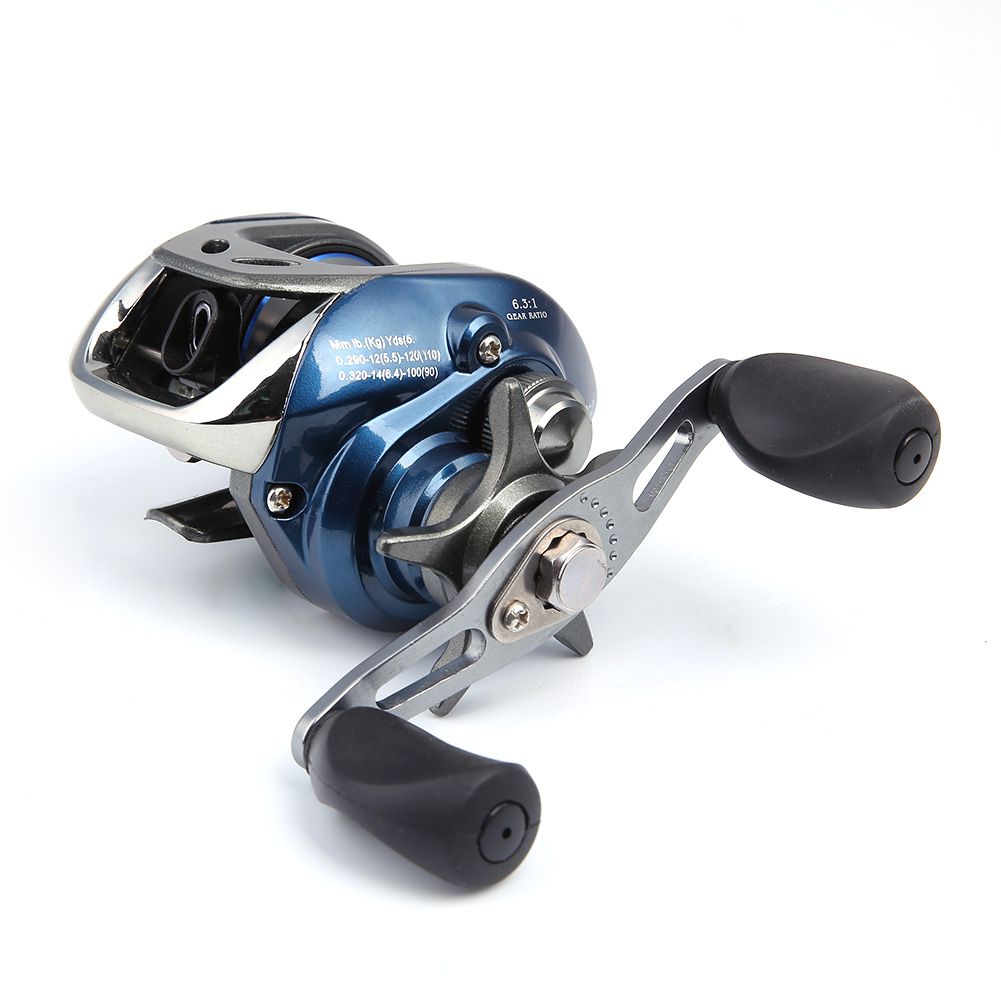 Features:Material:Alloy+PlasticColor: Black Left/Blue Right/Blue Left Bait Casting ReelBall bearings: 10+1Gear ratio: 6.3:1Size: 10.4*12*5.5cmLine capacity (mm/m): 0.28mm/120mu30010.3mm/100m